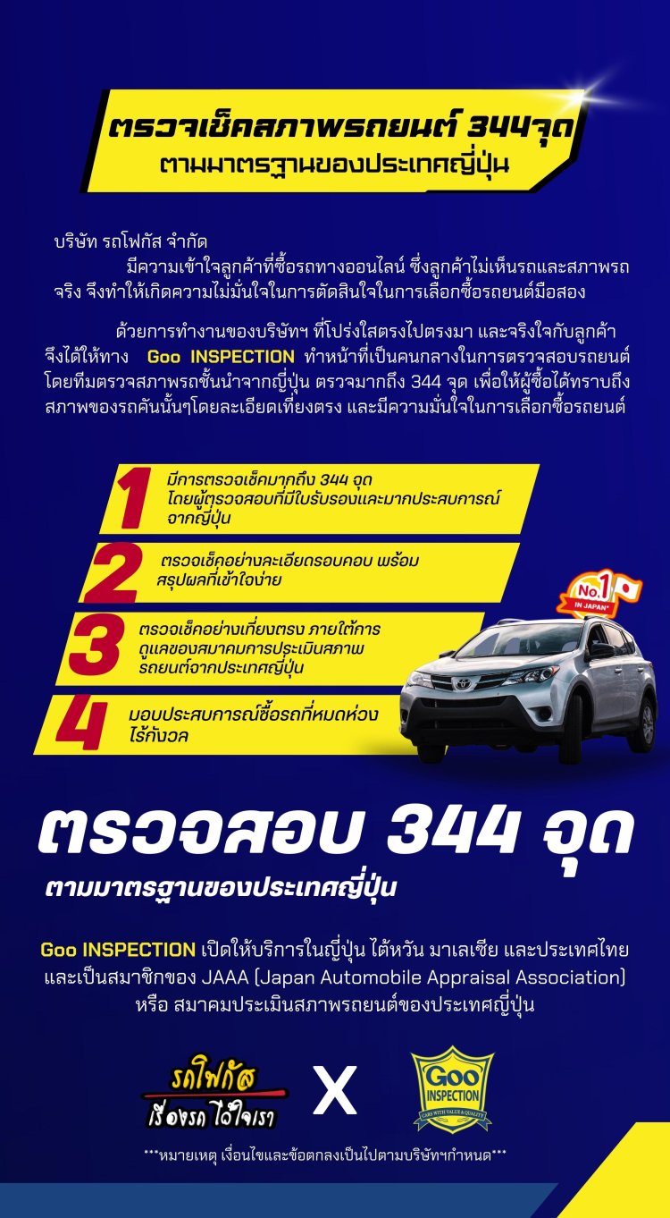 ตรวจเช็คสภาพรถยนต์สูงสุด 344 จุด ตามมาตรฐานของประเทศญี่ปุ่น