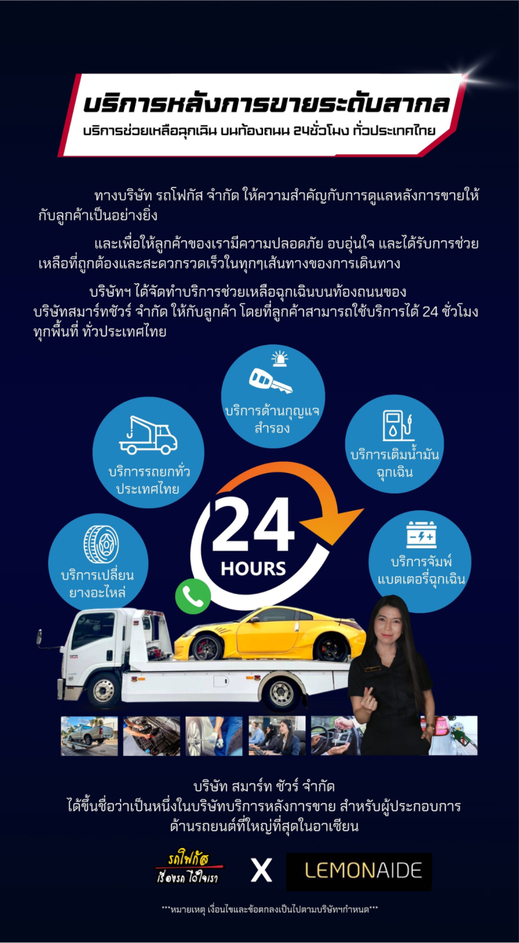 บริการหลังการขายระดับสากล บริการช่วยเหลือฉุกเฉิน บนท้องถนน 24 ชั่วโมง ทั่วประเทศไทย