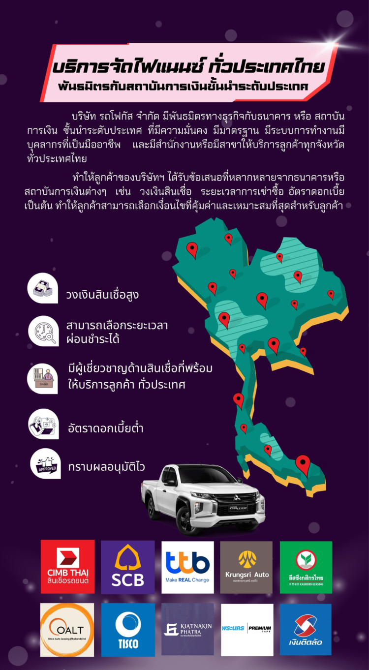 บริการจัดไฟแนนซ์ ทั่วประเทศไทย พันธมิตรกับสถานบันการเงินชั้นนำระดับประเทศ